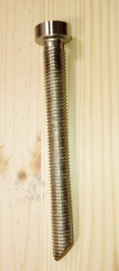 Introduzcamos entonces un grado mas de dificultad para ello. Vamos a tornear ligeramente la cabeza del tornillo para eliminar su perfil hexagonal 1) . Veamos el resultado: