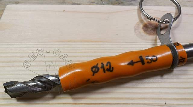 El tubo GLP que usamos para elaborar el Sistema Materile ajusta muy bien sobre la broca SDS de 12 mm. Si la anilla de la punta la dejamos suficientemente larga, podemos hacer un practico tope de taladrado para no pasarnos con la profundidad del agujero y dejar los spits ¡siempre perfectos!