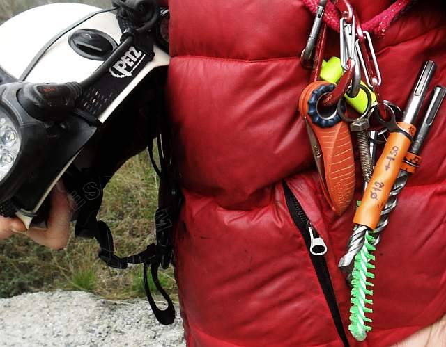 Existen diferentes soluciones para no “pasarse” taladrando y dejar el agujero con la profundidad requerida. A continuación vamos a contaros la que nosotros adoptamos, basada en el Sistema Materile, para mosquetonear las brocas
