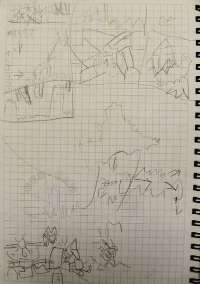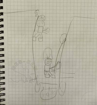 En tanto Bea prepara la instalacion de descenso, los chicos se ocupan de realizar la topo de la sala principal.