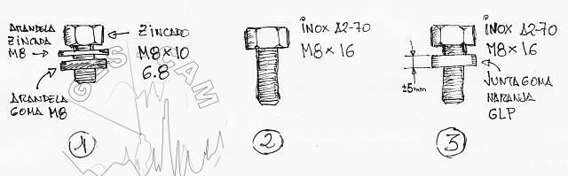 Inicialmente empleamos tornillería cincada de M8x10, pero el paso del tiempo termina por dejar su huella, como apreciamos en la anterior fotografía.