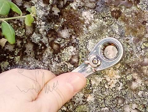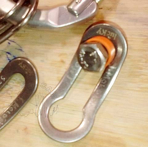 Poco a poco hemos ido reemplazando los primeros tornillos cincados por equivalentes inoxidables M8x16 en A2-70 como podemos ver en esta entrada. El empleo de los nuevos tornillos, ademas de mejorar la protección del spit, permite emplear el propio tornillo -por su mayor longitud y resistencia- como elemento de anclaje, por ejemplo con plaquetas recuperables.