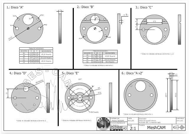 Los discos de soporte interior pueden mecanizarse o imprimirse en 3D (al final del artículo están los enlaces de descarga), en cualquier material no conductor disponible, siempre que proporcionen la resistencia mecánica adecuada.