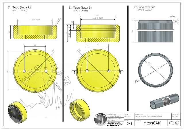 Gracias al trabajo y colaboración de Miguel, pasando y adaptando los croquis y bocetos del diseño a formato CAD y modelado 3D, podemos ofrecer los planos perfectamente realizados, con todas las cotas y elementos necesarios para mecanizar un nodo MeshCAM. Así como los archivos “.STL” de las piezas interiores del nodo para imprimirlos en 3D si se opta por esa opción.