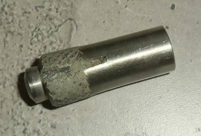 En el trozo opuesto apreciamos como en el agujero de 7 mm. la huella de la rosca aparece claramente marcada, en cambio en el agujero de 6 mm. no se aprecia nada.