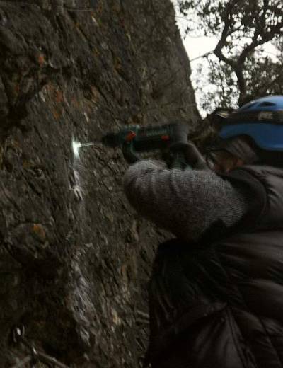 Aunque el objetivo inicial era valorar el comportamiento de los barraqueros en roca muy blanda o de mala calidad, hemos comenzado a investigar que tal funcionan sobre roca mas dura. No ya como anclaje de seguridad, si no su utilidad en progresion como alternativa al DBZ. Ya realizaremos mas adelante un ensayo mas completo con el dinamómetro.