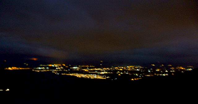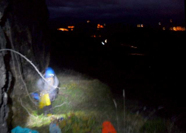 Y ya de noche, mientras recogemos auxiliados con las frontales, el lugar se revela como un mirador espectacular hacia Ponferrada.