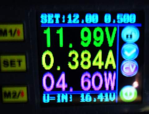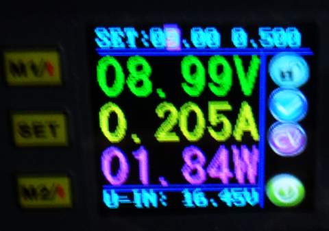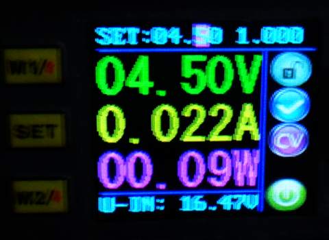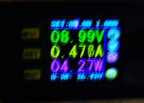 Con 4,5 voltios de alimentación estos son los valores de consumo de la linterna (modo emergencia):