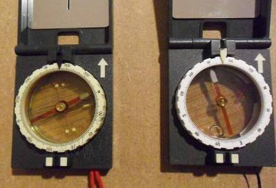 Distorsionar el campo magnético es mas fácil de lo que suponemos. Aparatos eléctricos, estructuras metálicas, pequeños imanes.. Es suficiente acercar algo ferroso, como por ejemplo la navaja, a la brújula para apreciar como su aguja se desvía. Con ese pequeño gesto hemos distorsionado el campo magnético en las inmediaciones de la brújula. Y si el campo magnético se distorsiona, la indicación de la brújula será errónea. Debemos tener esto siempre presente cada vez que vayamos a emplear la brújula.