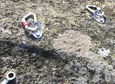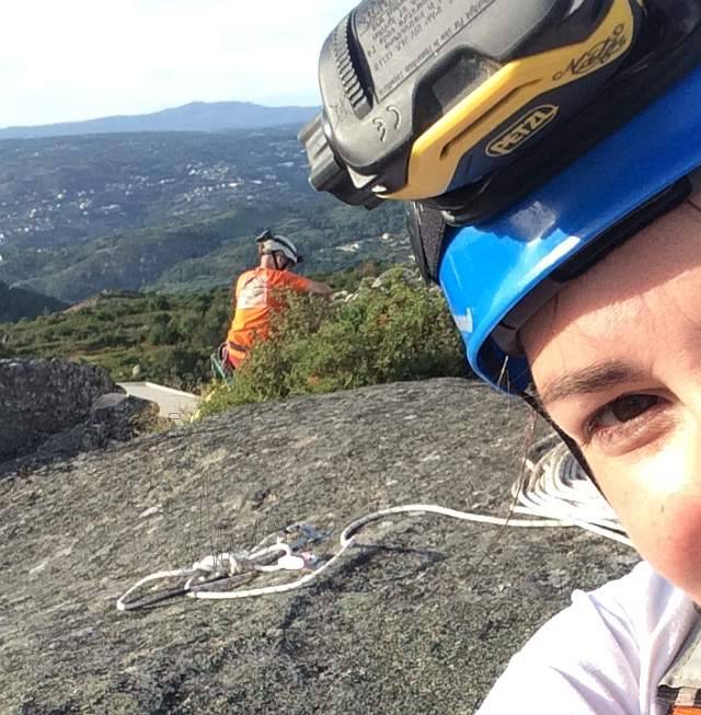El día amaneció nublado pero a la hora acordada para reunirnos estaba una tarde estupenda, calorcillo pero sin agobiar. Esta vez aparcamos en una zona que yo, personalmente aun no conocía y nos adentramos en la maleza, retruécanos, los toxos como pinchaban!! Llegamos a la zona que queda a la derecha del penedo en el que ya tenía estado otras veces con los compis, esta piedra es nueva para mi y tuve que agudizar la vista para encontrar los tornillos de los spits (se encontraban bien ya que estaban oxidados). Primero comprobamos que los spits estuvieran en buen estado e instalamos la cabecera para seguir bajando y comprobando los siguientes fraccionamientos.