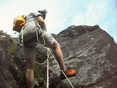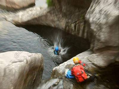 En torno a las marmitas, la roca, pulida por el agua, ofrece una adherencia aceptable cuando está seca. Mojada se convierte en una verdadera pista de patinaje, de modo que ¡atención!.