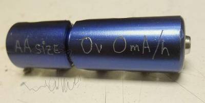 Este accesorio es una batería dummy. Sus especificaciones de voltaje y capacidad son asombrosas: 0 voltios y 0 mA/h. ¿Para que sirve esto?. Pues para insertarlo en un portapilas, en sustitución de una pila normal, y reducir el valor de tensión nominal total del pack.