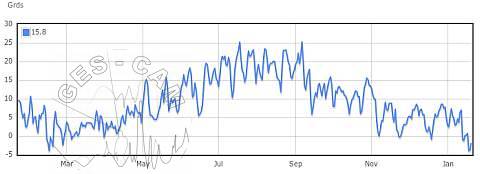 Este es el histórico de temperatura exterior en el refugio de Manzaneda. El pico de temperatura mínima es similar al del año pasado… de momento.