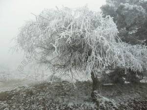 Resulta un poco desconcertante encontrarse los árboles completamente “nevados” y nada de nieve en el suelo.