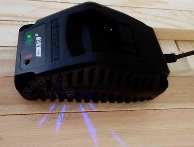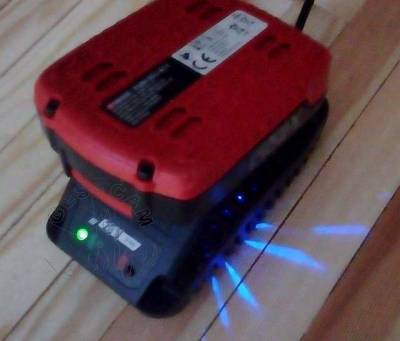 Y una vez la batería esta completamente cargada, el LED del cargador se pone verde, y el del regualdor interior en azul: