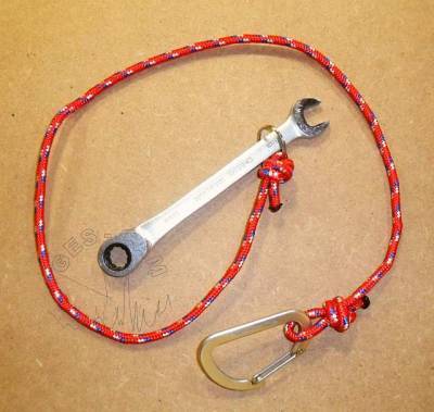 En la foto podemos ver la solución adoptada. Escogiendo el tamaño de anilla correcto la llave no se sale jamás, y resulta muy cómodo su manejo, incluso con guantes. He usado esta disposición durante años y de momento no la cambio.