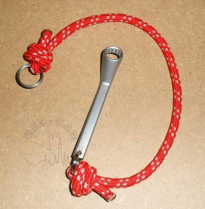 Lo cierto es que le tengo mucho cariño por que hemos pasado muchas aventuras juntos. Con el tiempo, y la mejora de mis habilidades, adquirí una llave “carraquera”. Muy cómoda y resultona. Pero me daba pereza taladrarla para anillarla, de modo que se me ocurrió una solución diferente, recurriendo también al mismo tipo de anilla de acero..