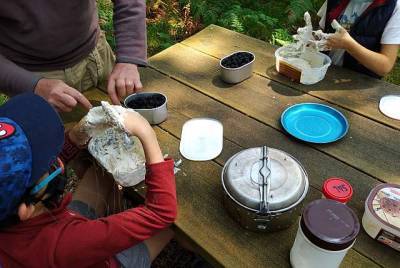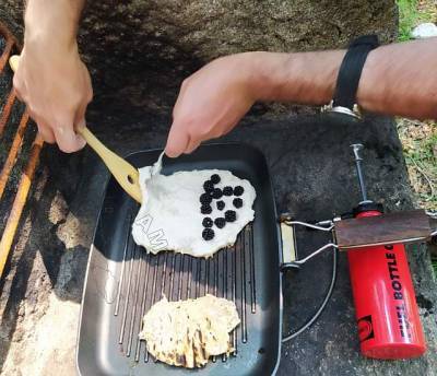 ¿Y que tal si hacemos un poco de pan del camino y cocinamos unas tortitas con moras del bosque?
