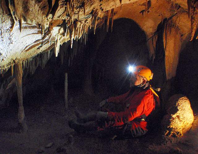 Tuvimos poco tiempo para explorar la cueva, ya que por la mañana nos enredamos trazando tracks y trasteando con los ordenadores. Llegamos a un arenero en el que estaba sin pisar la arena, me metí por esa gatera para ver si seguía la cueva pero llegaba a un punto en el que necesitaríamos quitar mucha arena para seguir, pero me da la nariz que sigue por ahí la cueva… Cuando nos disponíamos a intentar acceder a un piso superior llegó la hora de salir de la cueva, asique nos queda para la próxima visita.
