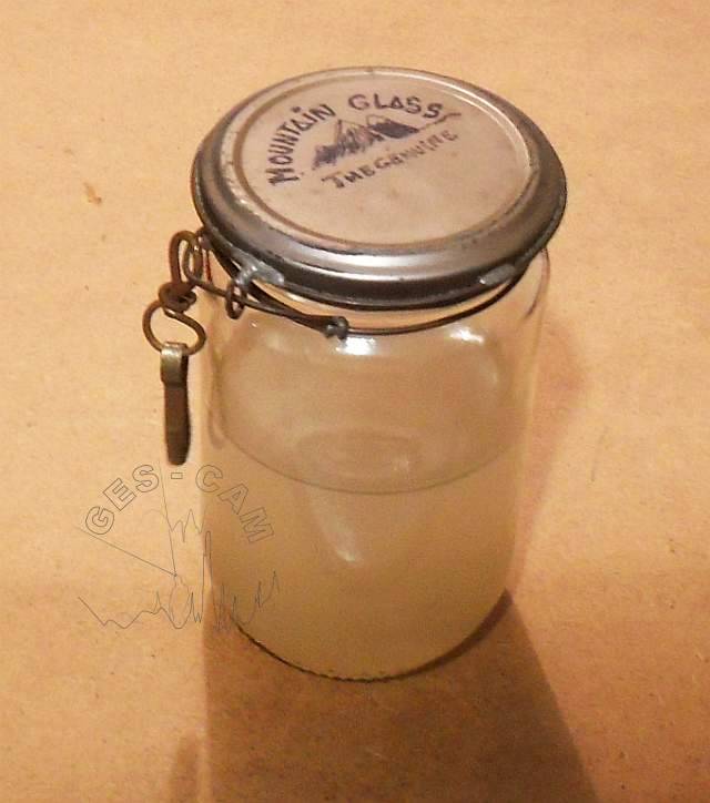 Está elaborado reutilizando un frasco de conservas de vidrio con tapa hermética, y un poco de alambre de cobre de conducción electrica de 1.5 mm de sección. Todo el material es “recuperado” con lo cual coste total del Mountain Glass tiende a cero.