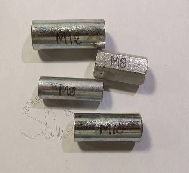 En lugar de tuerca, para sujetar la plaqueta, emplearemos un casquillo roscado de la métrica adecuada. Podemos encontrar casquillos de perfil cilíndrico o hexagonal1). La medida mas habitual para los párabolt suele ser M10, pero podemos encontrarnos también plaquetas M8 o M12.