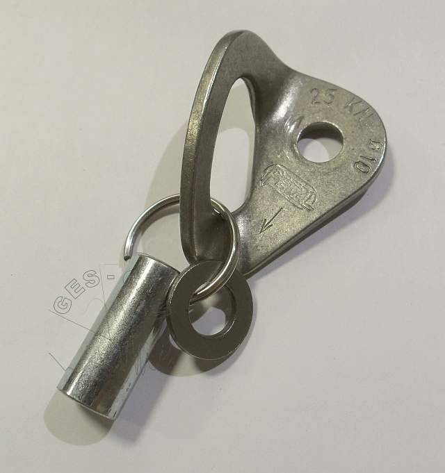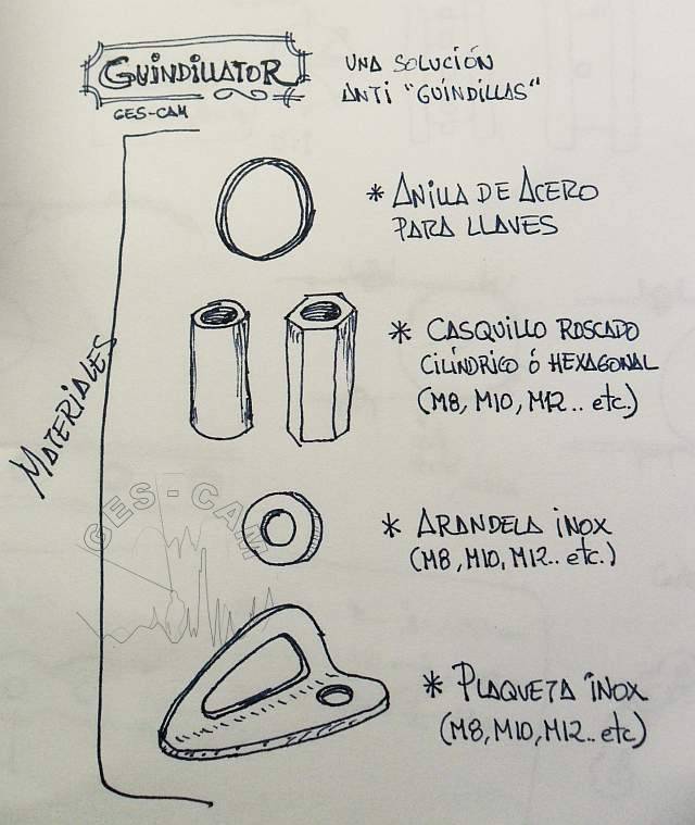En la anilla de acero engancharemos también la arandela y la plaqueta correspondiente y.. ¡ya está completo el “Guindillator”-kit!. Solo engánchalo a tu arnés y lo tendrás siempre a mano.