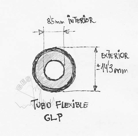 El tubo de goma GLP 1) es de uso doméstico, altamente visible, económico y se encuentra en cualquier ferretería. Y si es material retirado por exceder su fecha de caducidad ¡nos sale gratis!. Estas son las cotas típicas del tubo GLP: