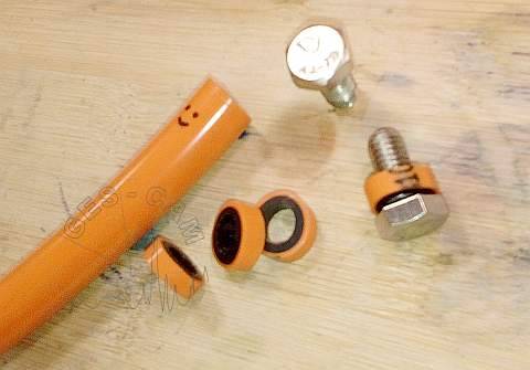 En algunos casos, por escasez de material, hemos colocado solo el tornillo, pero la junta de goma es conveniente, por que evita la entrada del agua. Las juntas que veníamos empleando con los tornillos cincados de M8x10 resultan un poco cortas con los tornillos inox -mas largos- y se nos presentaban dudas en cuanto a su eficacia para “sellar” la entrada del spit.