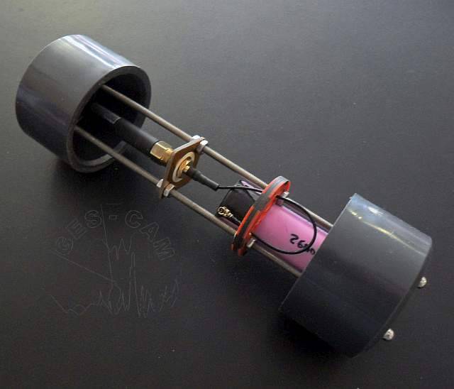 Pueden colocarse varias celdas de bateria en linea, con solo aumentar el numero de discos soporte (B o C), así como incrementar las respectivas longitudes del tubo exterior y las varillas roscadas hasta el tamaño necesario.