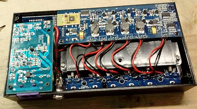 Como solo trae de fábrica la posibilidad de alimentación desde la red eléctrica, realizamos un poco de IV1) y al retirar la carcasa posterior apreciamos con alegría que la fuente de alimentación interna proporciona una salida de 12 voltios para todo el circuito cargador. ¡Estamos de suerte!, si le incorporamos un conector para alimentación externa… ¡podremos proporcionarle los 12 voltios de alimentación desde una fuente externa! en aquellas situaciones donde no esté disponible un enchufe de red eléctrica.