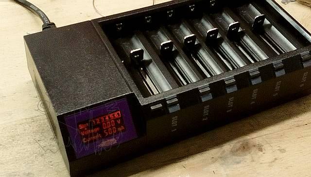 Carga simultánea (500 mA max@bat) de 6 baterias para los siguientes formatos: 10440, 14500, 16340, 16650, 17650, 17670, 18350, 18490, 18500, 18650.