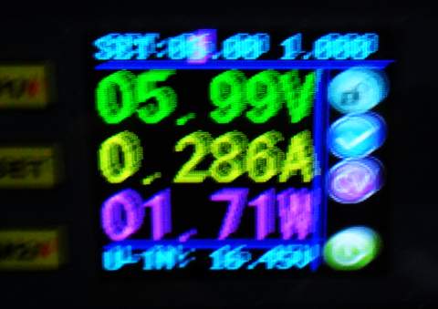 Con 4,5 voltios de alimentación estos son los valores de consumo de la linterna (modo emergencia):