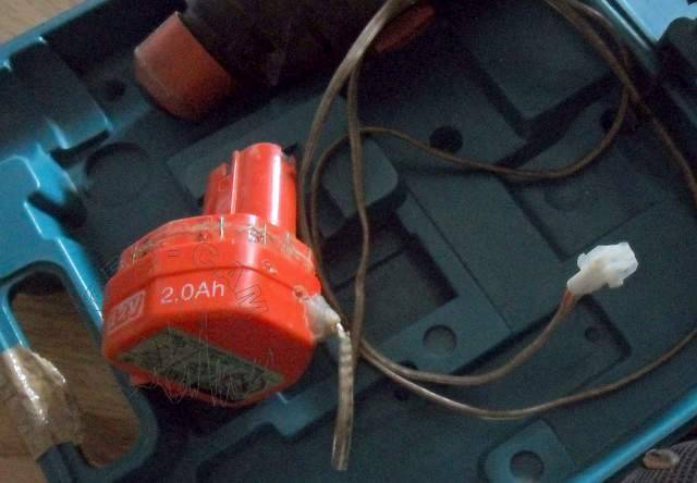 Lo mas práctico fué vaciar la carcasa de la bateria original de sus celdas de Ni-Cd y dejarla a modo de batería “dummy” con un cable para emplear la batería de 12v externa. Asi el peso del taladro se reduce un poco, y cuando estas trabjando en posiciones forzadas, ese poquito se agradece…