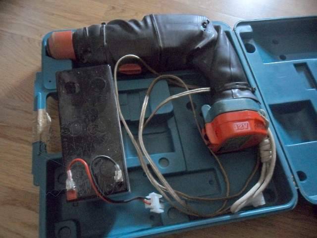 El taladro veterano del Club, un pionero en su especie. Esta pequeña joya, con un potente martillo neumático, funciona con tension normal de 12v.