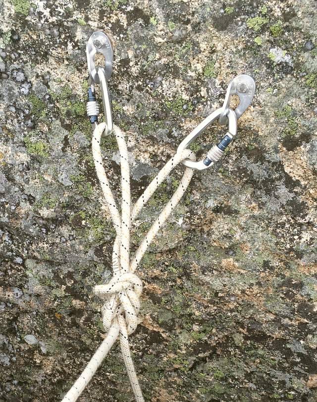 La noche se nos echaba encima y empezaba a refrescar, asique a mi solo me dio tempo de limpiar dos spits del pasamanos. Y comenzamos a recoger. Javi recogió la línea que montamos primero y yo quedé arriba para desmontar la estrechez y el pasamanos.