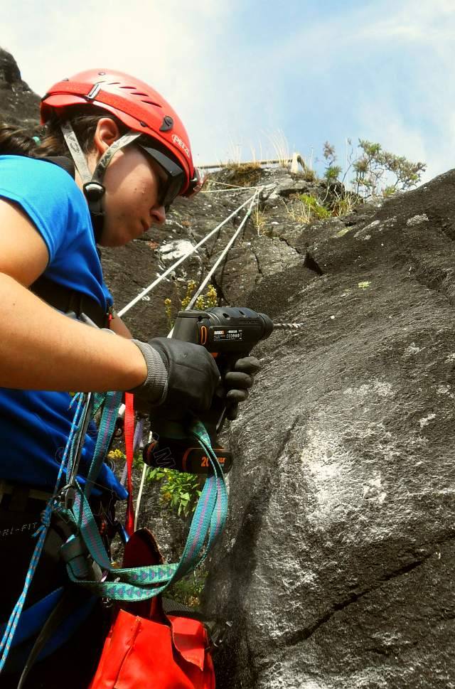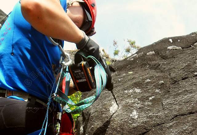 La roca es ideal para fijar todo tipo de anclajes, aunque su dureza y abundante presencia de cuarzo representan una dura prueba, de cara a evaluar la respuesta del taladro.