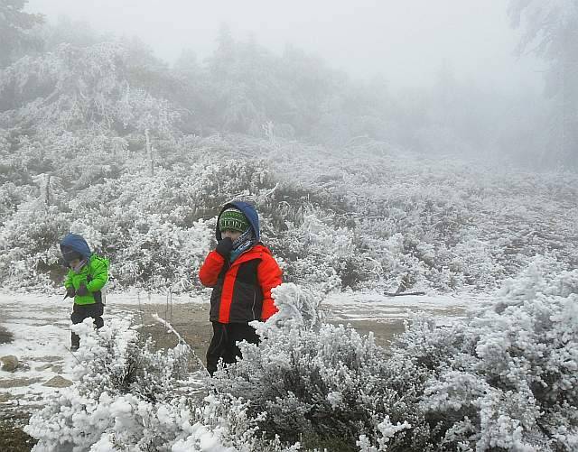 Resulta un poco desconcertante encontrarse los árboles completamente “nevados” y nada de nieve en el suelo.